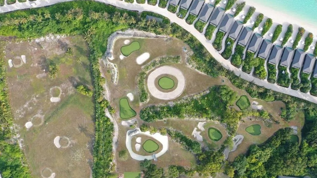 One of my “Haven’t Seen Yet” piece was a golf hole hitting over the water from one island to another (Haven’t Seen Yet #11 – Maldives Complete Blog, item #16). The signature hole of Jawakara’s executive course is an island green, but instead of it being from one island to another, it is on island within another.