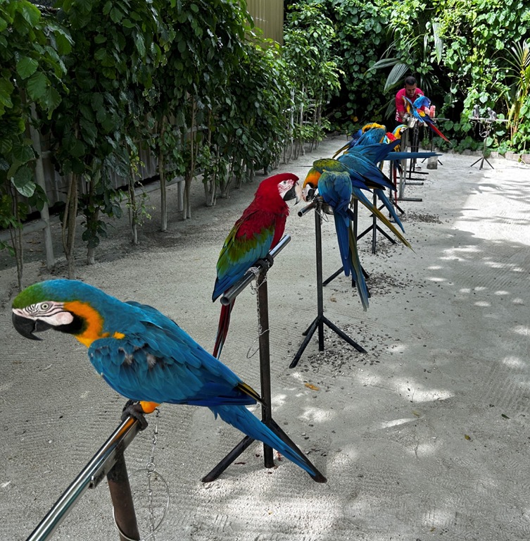 Ducks aren’t the large bird collection at Siyam World as they also boast over a dozen colorful macaws in their animal sanctuary.