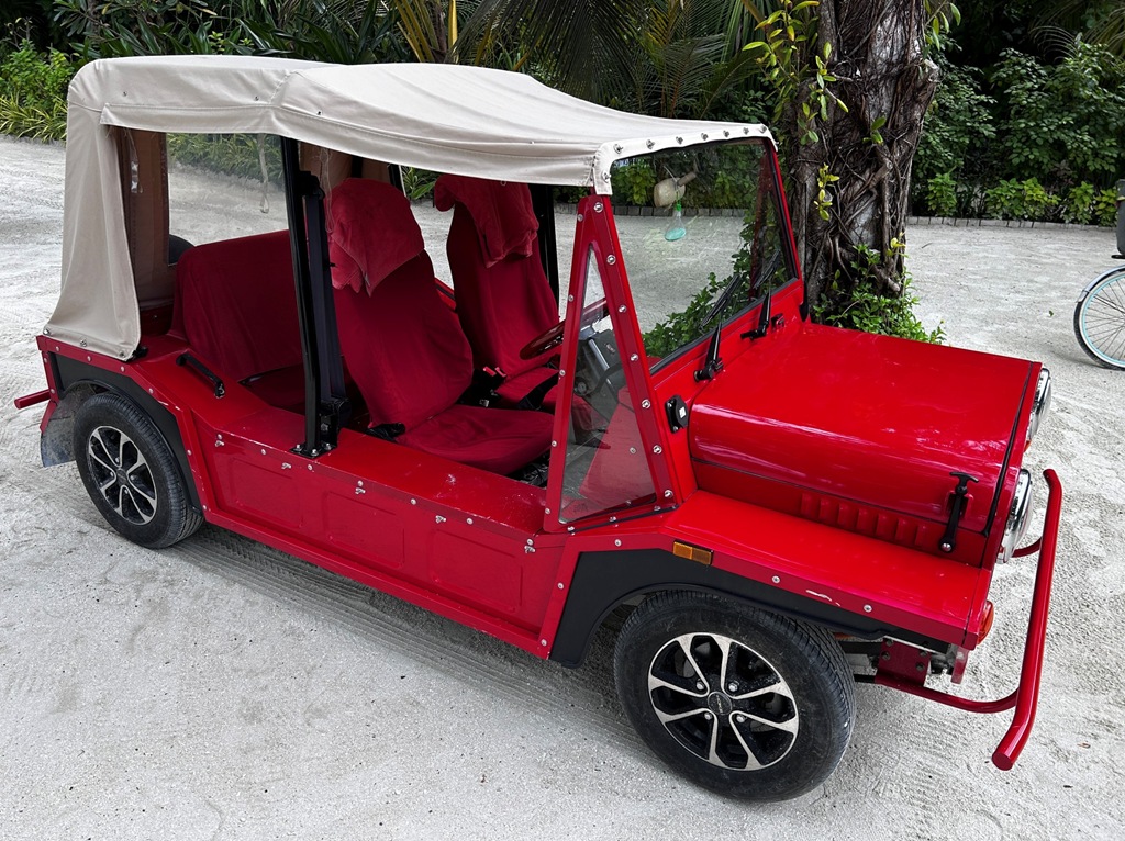 The resorts feature quite a collection of vehicles to transport you around the property (especially the bigger ones). Reethi Rah allowed its guests to self-drive one of their standard buggies, but Sun Siyam Olhuveli’s is stylish Jeep design with plush seats and flashy red colour. It is available to residents of their multi-bedroom Beach Residence and a driving license is required.